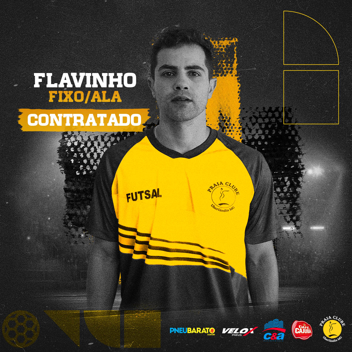Após um hiato de oito anos, a Equipe de Futsal Adulto do Praia Clube está de volta à elite do futsal brasileiro! Depois de anunciar a contratação do fixo Dovenir Domingues Neto em dezembro, nesta quinta-feira (30) o Praia Clube, em parceria com Café Cajubá, C&A Construtora, Pneu Barato e Velox Pneus, anuncia mais seis reforços para o elenco praiano de 2020.