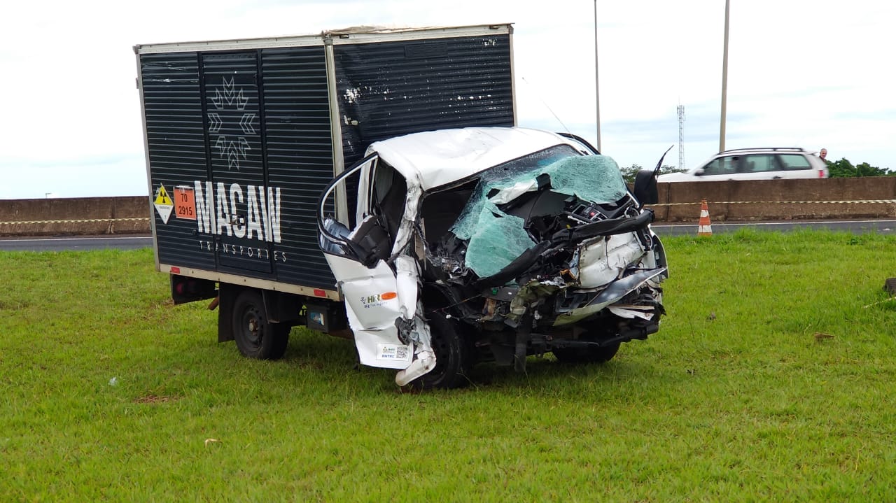 Um caminhão utilitário se envolveu em um acidente com um caminhão na Avenida João Naves de Ávila, próximo ao cruzamento com a BR-050, na manhã deste sábado, 5. Um dos veículos transportava uma carga com produtos radioativos.