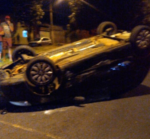 Um carro capotou na noite desta terça-feira, 12, após dois veículo colidirem no Bairro Jaraguá, zona oeste de Uberlândia. Uma mulher ficou ferida e precisou receber atendimento médico.