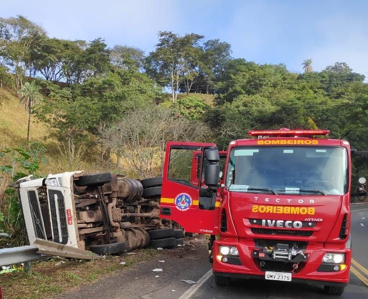 De acordo com o Corpo de Bombeiros, o motorista perdeu o controle do veículo em um local de curva fechada e acabou tombando para o acostamento. Ele transportava uma carga de repolhos que pode ter contribuído para o capotamento.