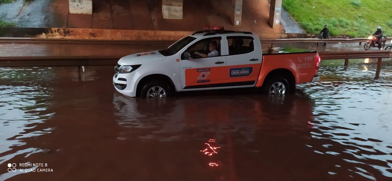O tempo começou a ficar nublado por volta das 15h e a chuva começou a cair às 16h30. Locais que costumam ficar alagados, como as Avenidas João Naves de Ávila, Rondon Pacheco e Segismundo Pereira, tiveram pontos com pessoas ilhadas em estabelecimentos. Não houve feridos devido ao temporal, mas duas árvores caíram e os bombeiros precisaram ir até os locais. A primeira ocorrência foi no Bairro Gramado e logo depois no Presidente Roosevelt.