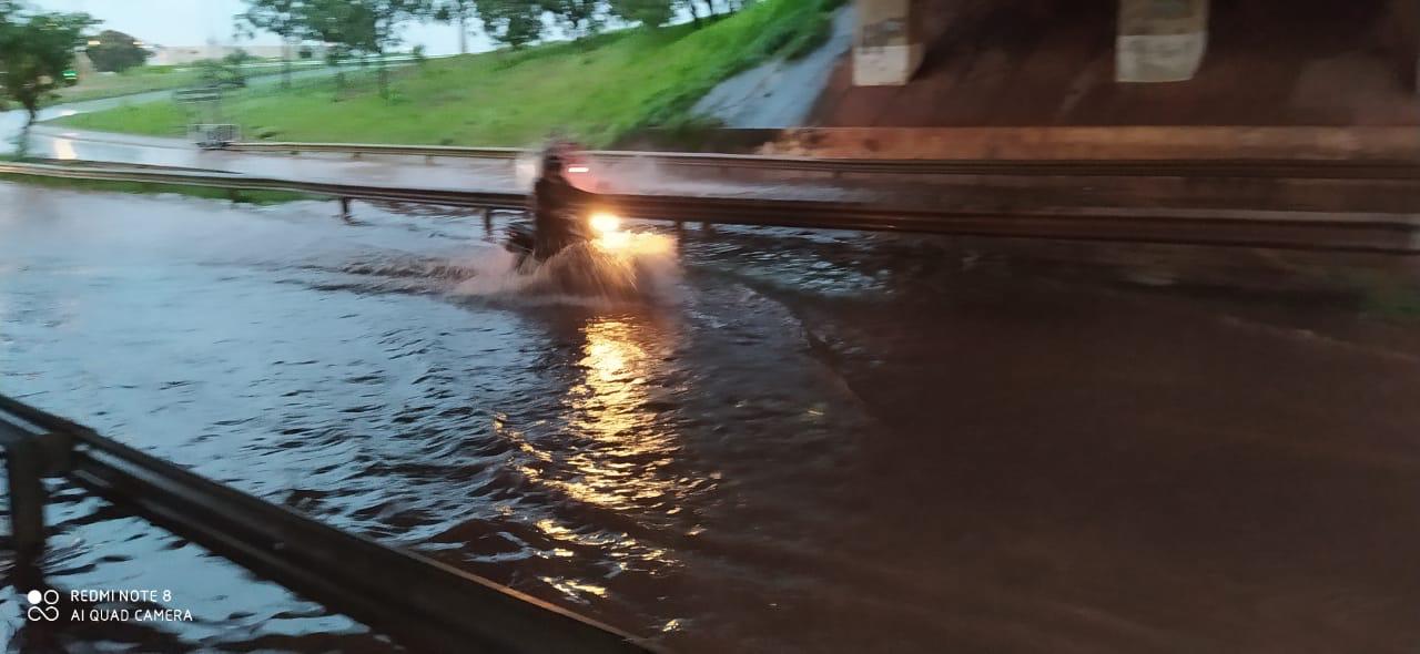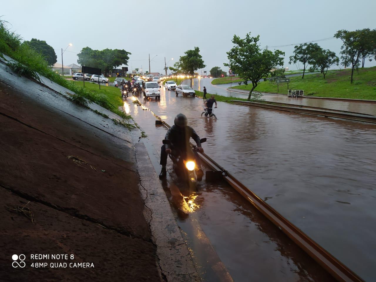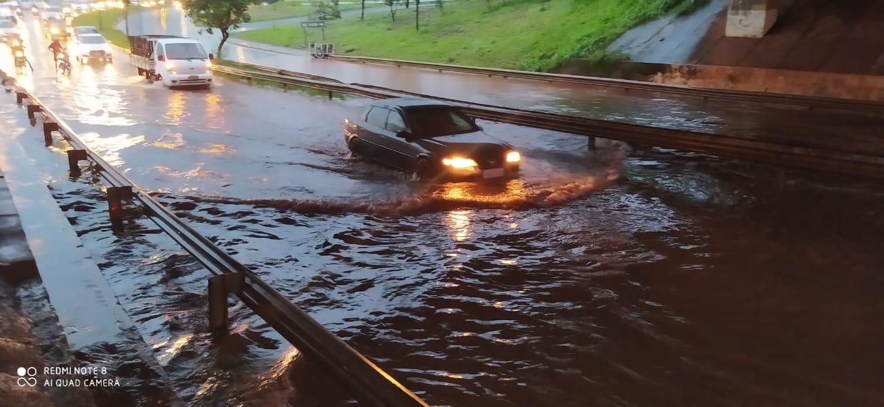 Um forte temporal foi registrado em Uberlândia no fim da tarde desta sexta-feira, 17. Algumas vias ficaram alagadas e o Corpo de Bombeiros (CB) registrou duas ocorrências durante a chuva.