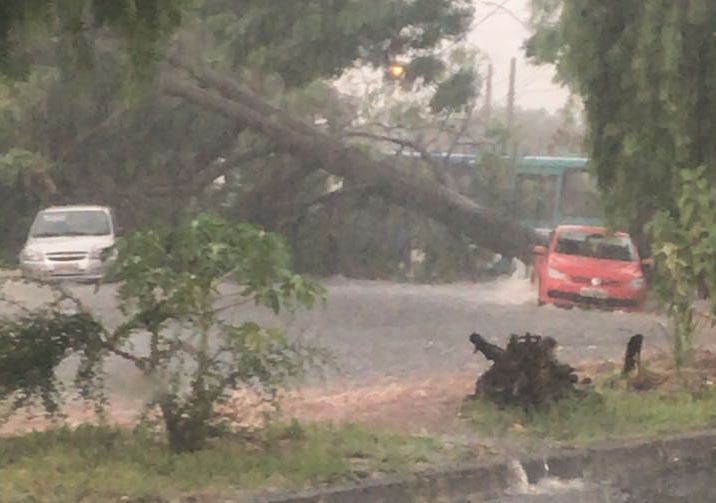 Algumas árvores também caíram em alguns pontos da cidade, como a Avenida Balaiadas, Rua Iguaçu e o cruzamento da Avenida Comendador Alexandrino Garcia com a Rua República do Piratini.