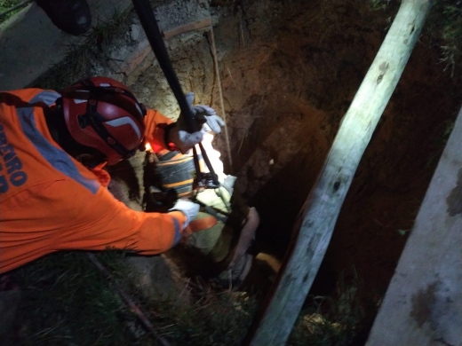 De acordo com a apuração dos bombeiros, a fossa estava desativada e o homem ficou preso sob a tampa de estrutura. O trabalho para resgatá-lo exigiu apoio de vários militares e durou horas, mas foi realizado com sucesso. A vítima foi socorrida consciente e levada para receber atendimento médico.