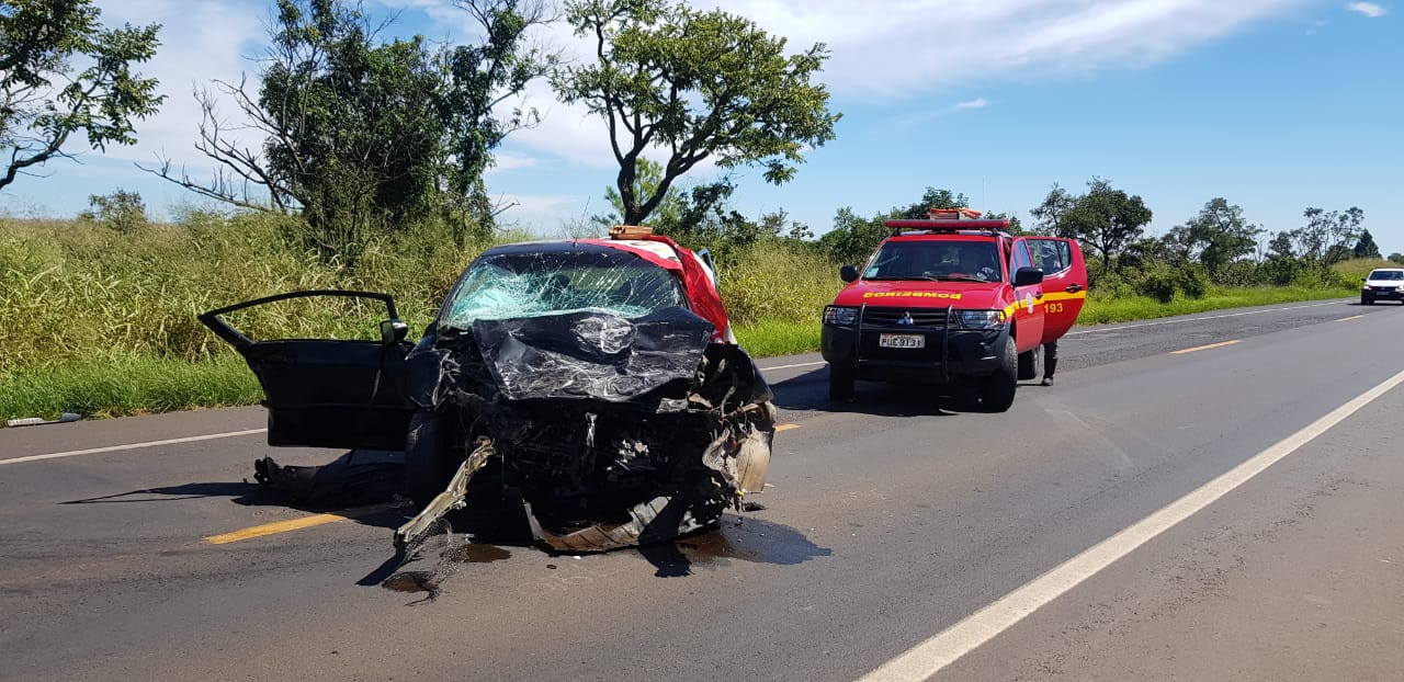 Uma pessoa morreu e outras duas ficaram feridas após uma colisão entre dois veículos na BR-365, na tarde desta sexta-feira, 19. O acidente ocorreu no sentido Uberlândia-Patos de Minas, próximo ao trevo de Indianópolis.