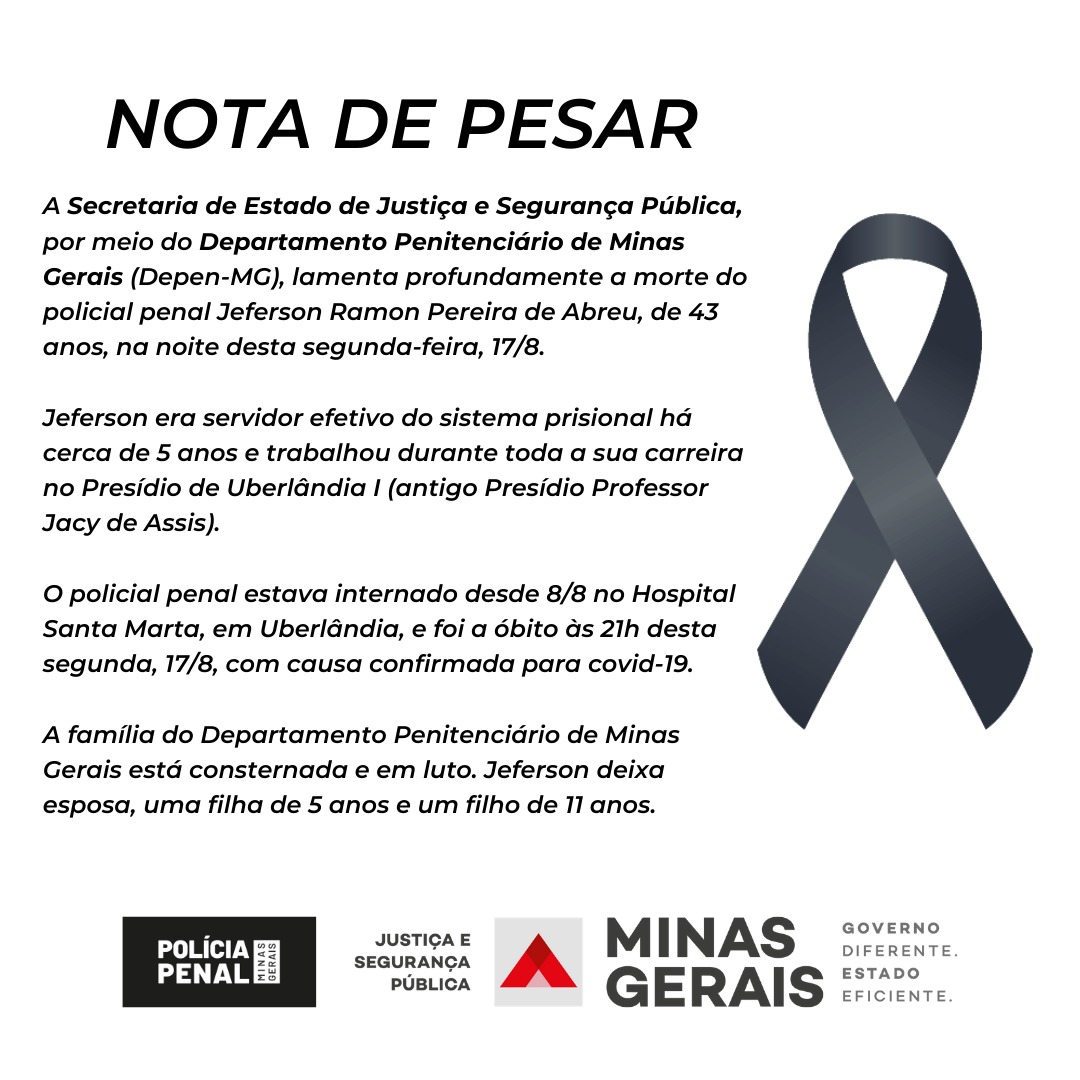 Em nota, a Secretaria de Estado de Justiça e Segurança Pública do Estado de Minas Gerais (Sejusp) informou que Jeferson estava internado desde o dia 8 em um hospital particular da cidade. Ele atuava há aproximadamente cinco anos no Presídio Professor Jacy de Assis. A Sargento Cláudia estava internada em Uberaba e tinha perdido o irmão pela mesma doença há um pouco mais de um mês.