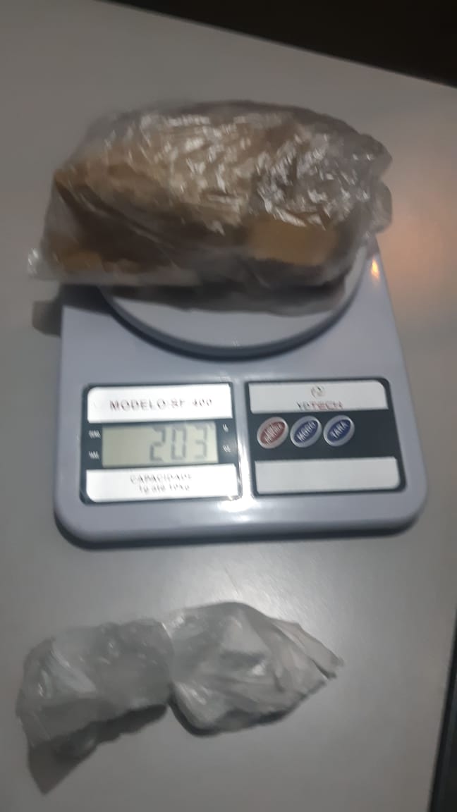 Durante fiscalização de rotina, dois ocupantes de um carro com placas de Patrocínio-MG foram abordados na rodovia. Em consulta ao sistema policial, os agentes constataram que o veículo tinha uma queixa de roubo. Durante vistoria no automóvel ainda foram localizadas várias porções de crack e cocaína.