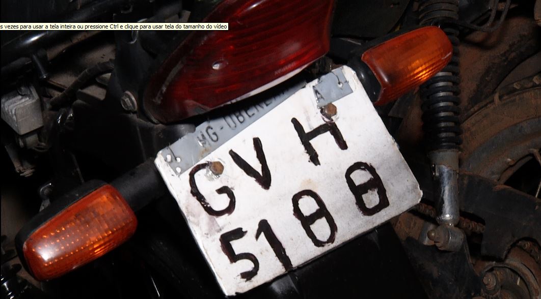 Um dos suspeitos estava com um estilingue nas costas para simular que era uma arma de fogo. Os militares verificaram que a moto é roubada, pois estava com a placa adulterada e o chassi raspado.