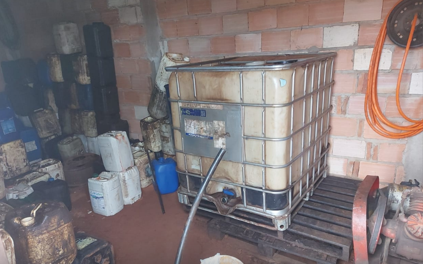 Ao chegarem ao local, as equipes confirmaram a presença de diversos galões plásticos contendo substâncias análogas ao óleo diesel e etanol. A perícia inicial constatou que os produtos estavam sendo mantidos de forma inadequada, desrespeitando as normas ambientais estabelecidas pelo Conselho Estadual de Política Ambiental (COPAM). Além do armazenamento irregular, os agentes verificaram que no local também ocorria o transbordo do combustível, atividade que oferece alto risco de explosão e contaminação do solo se não for realizada corretamente.