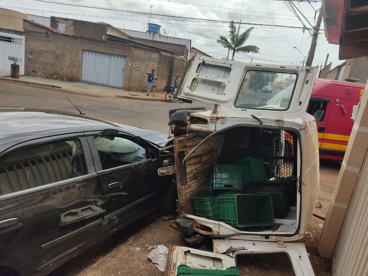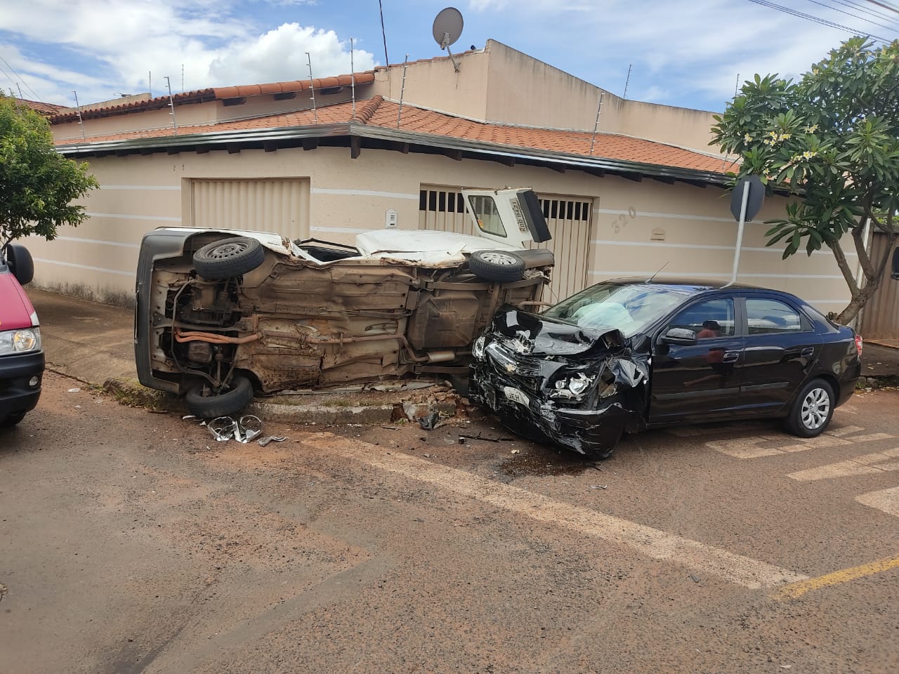 Um acidente foi registrado na tarde desta quinta-feira, 31, no Bairro Luizote de Freitas, em Uberlândia. Um veículo não respeitou a sinalização de parada obrigatória e atingiu uma Fiorino, que acabou tombando.