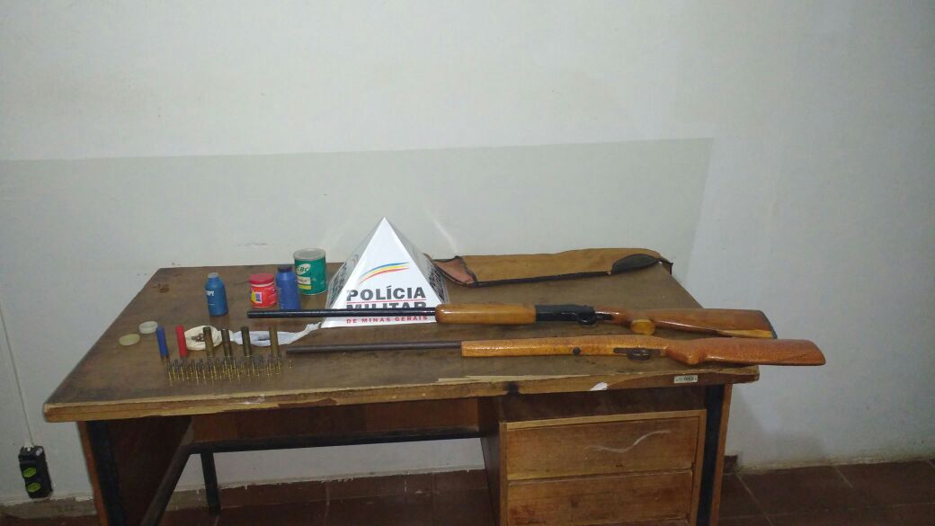 No local, os militares encontraram duas espingardas, calibre 22 e 28, com várias munições intactas e deflagradas. Também foram encontrados materiais para a fabricação dos cartuchos.