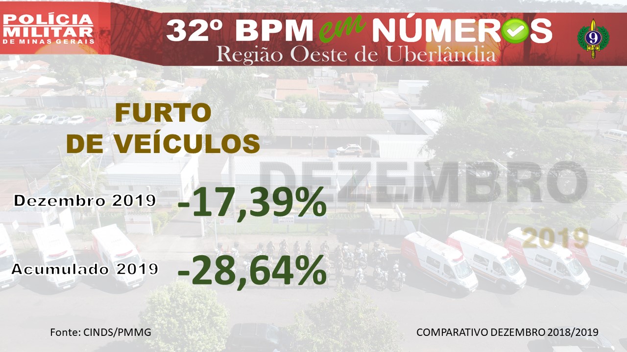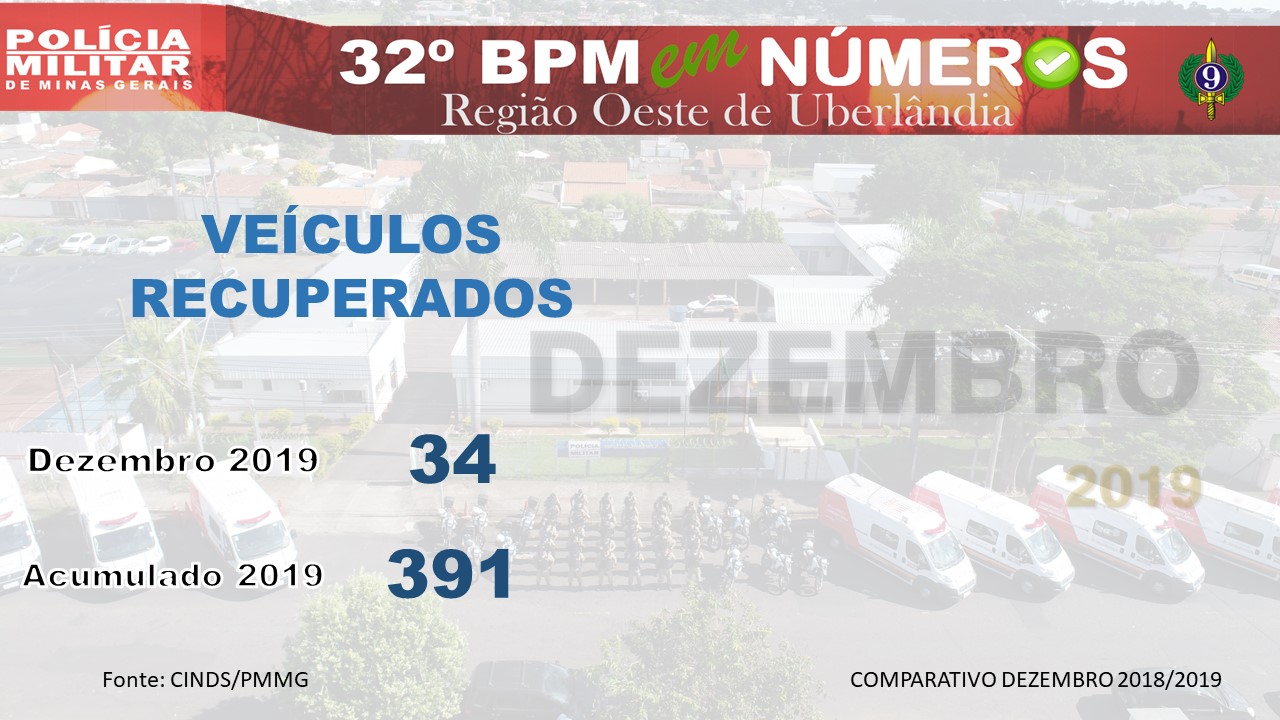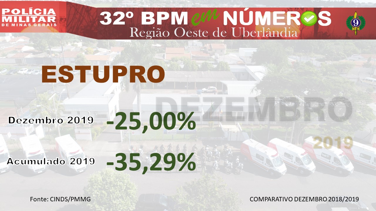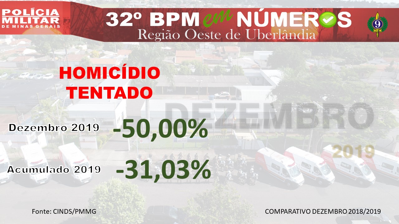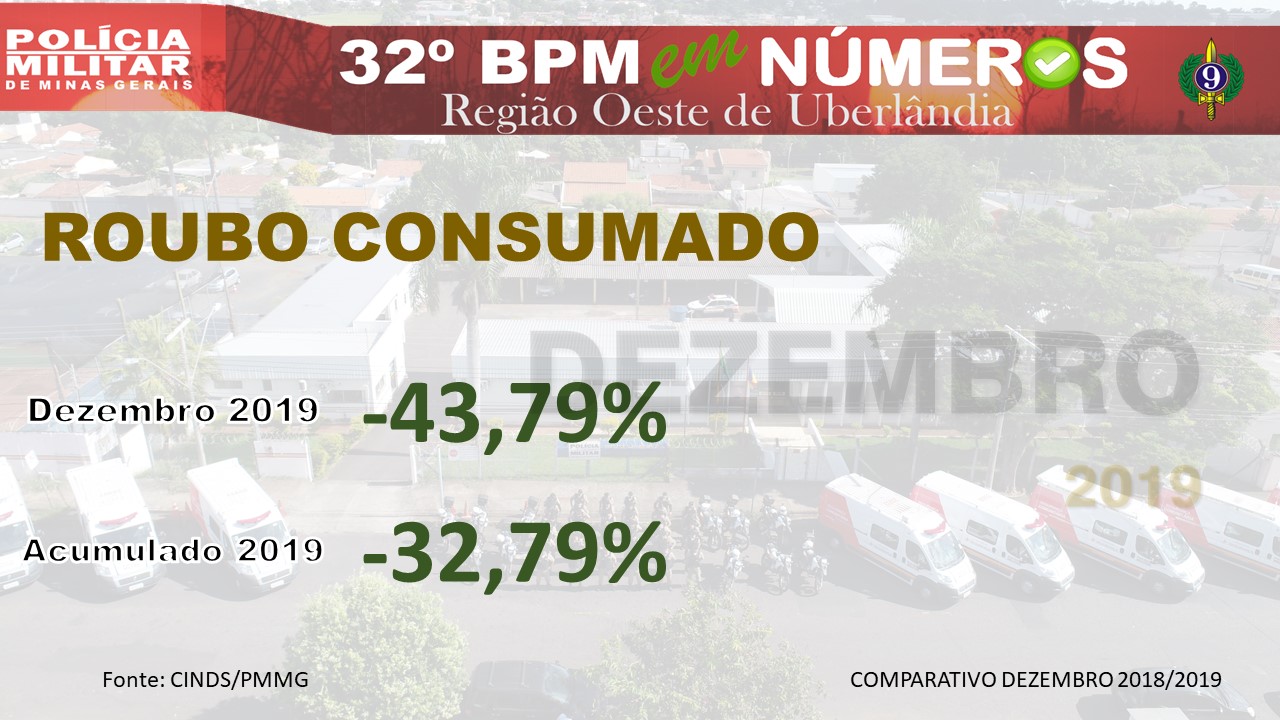 O 32º Batalhão da Polícia Militar (PM) divulgou na manhã desta terça-feira, 14, um balanço com o resultado do trabalho feito durante o ano de 2019 na zona oeste de Uberlândia, que inclui 19 bairros da cidade.