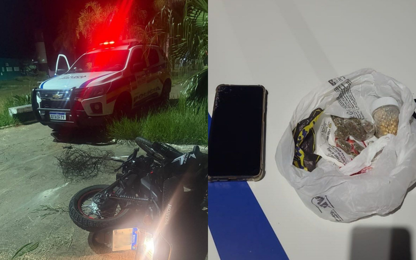 Após acompanhamento tático, o motociclista sofreu uma queda do veículo e tentou dar continuidade à fuga a pé. No entanto, os policiais conseguiram contê-lo e realizar a abordagem.