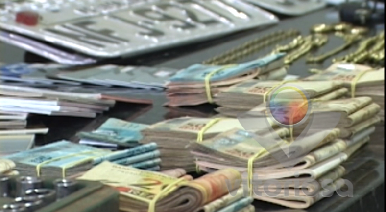 Na residência rural, os policias encontraram R$ 45 mil, cheques, cartões de crédito, jóias, placas de veículos adulteradas e as ferramentas utilizadas para realizar os desmanches.