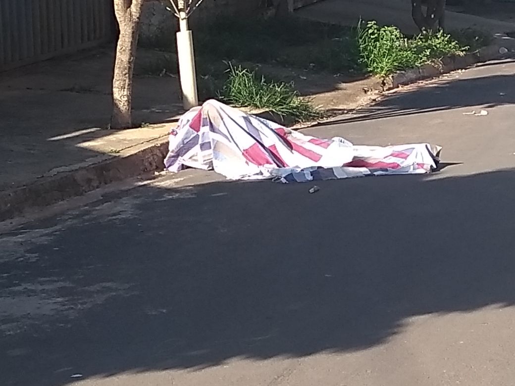 Um homem foi assassinado com cinco golpes de faca, no Bairro Residencial Moriá, na manhã deste domingo, 20. A faca ficou cravada no abdômen da vítima.