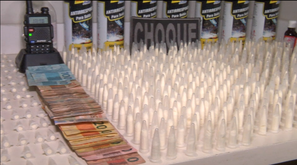 Os militares receberam uma denúncia anônima, através do Disk Denúncia 181, informando sobre um possível laboratório de drogas. Ao chegar no local, a polícia encontrou 700 pinos de cocaína, R$ 3 mil em dinheiro, um rádio HT ligado na frequência da polícia e materiais utilizados para preparar a droga.